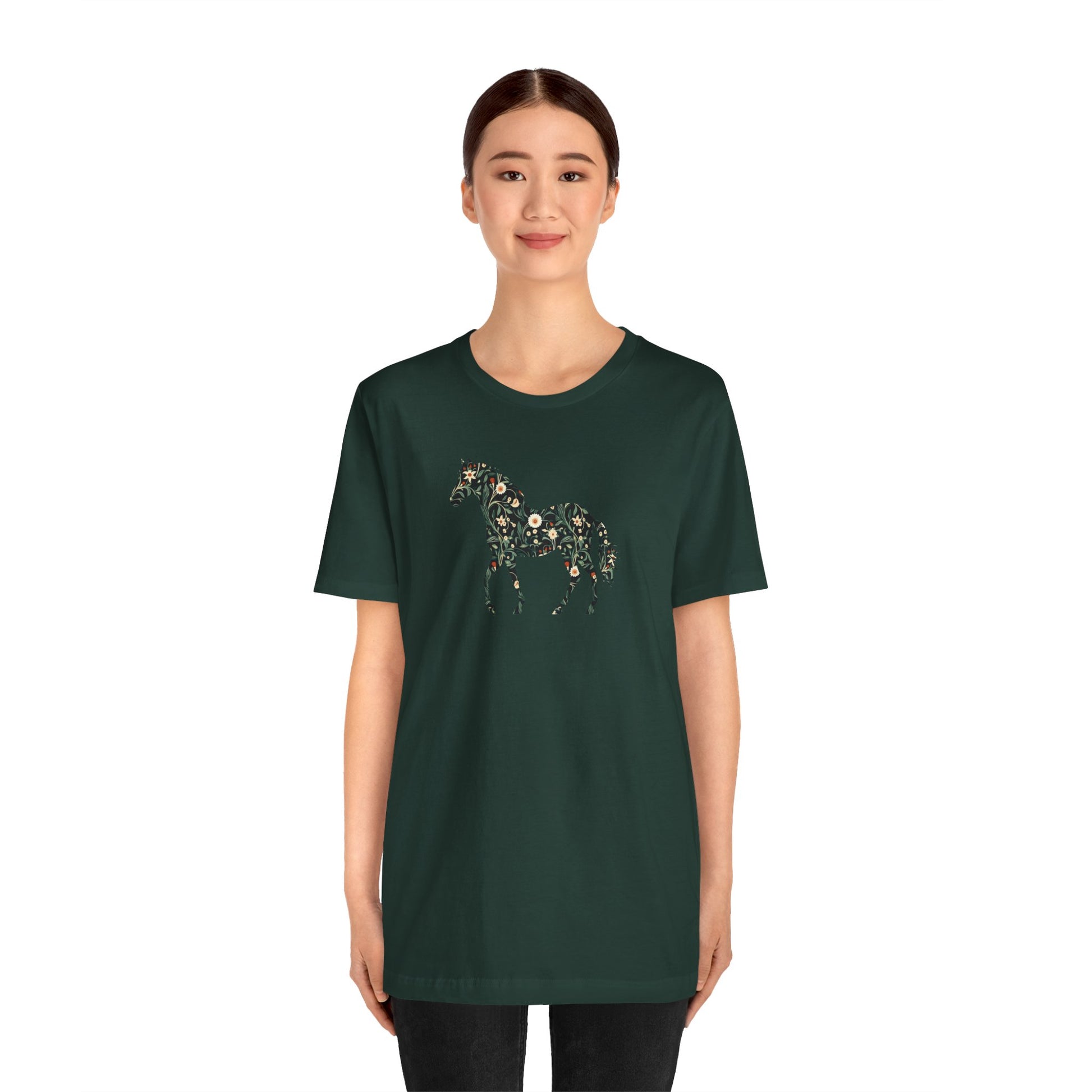 Floral Horse Short Sleeve T-Shirt - Green Vine