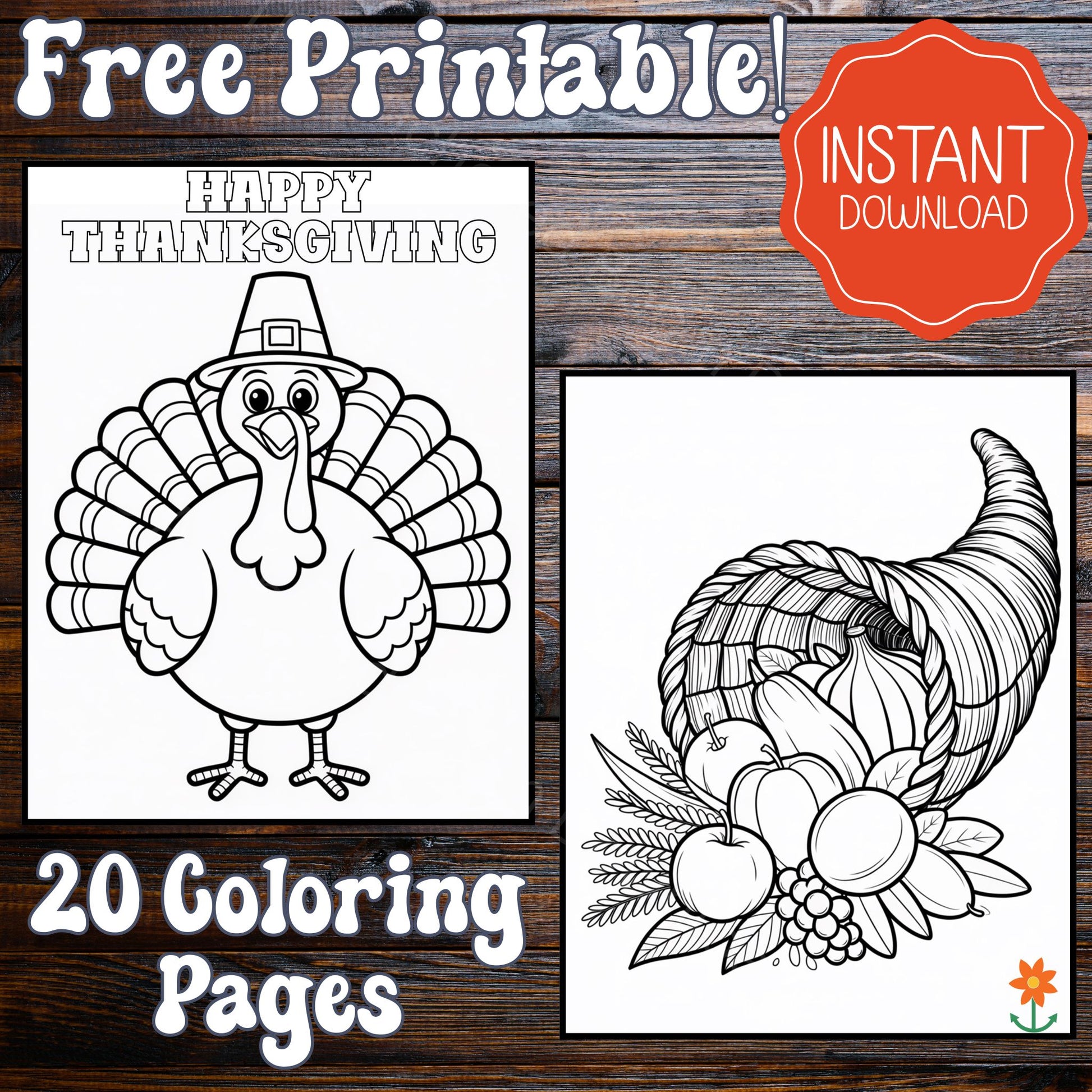Free Thanksgiving Coloring Pages Printable Set for Kids Families and Classrooms