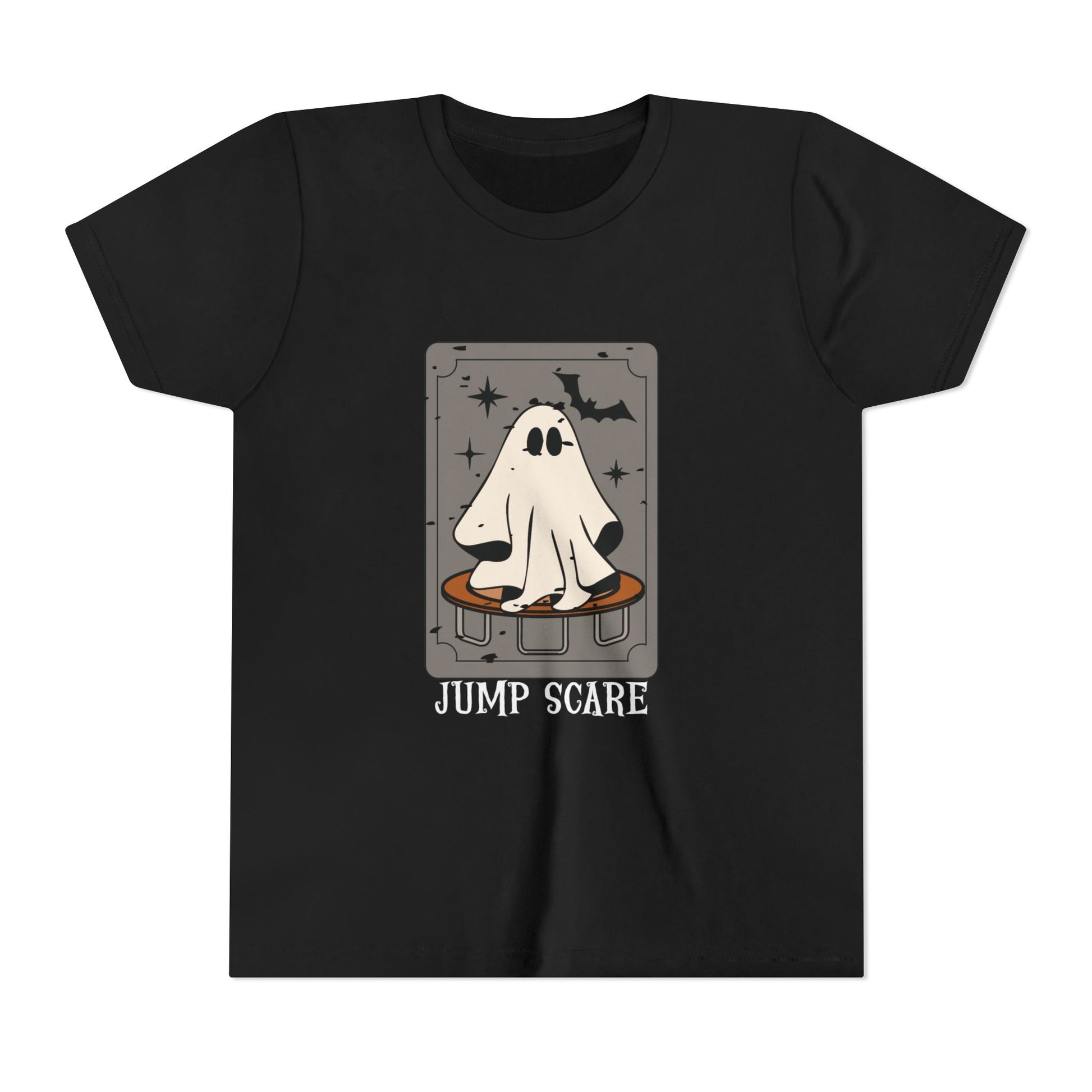 A fresh take on “jump scare,” this youth short sleeve tee features a playful ghost mid-trampoline bounce. Made with soft, lightweight cotton for all-day comfort, it’s great for school, sports, or seasonal fun. Durable stitching and a modern fit mean it holds up to every leap, jump, and game, while the design brings just the right amount of Halloween spirit without being over the top.