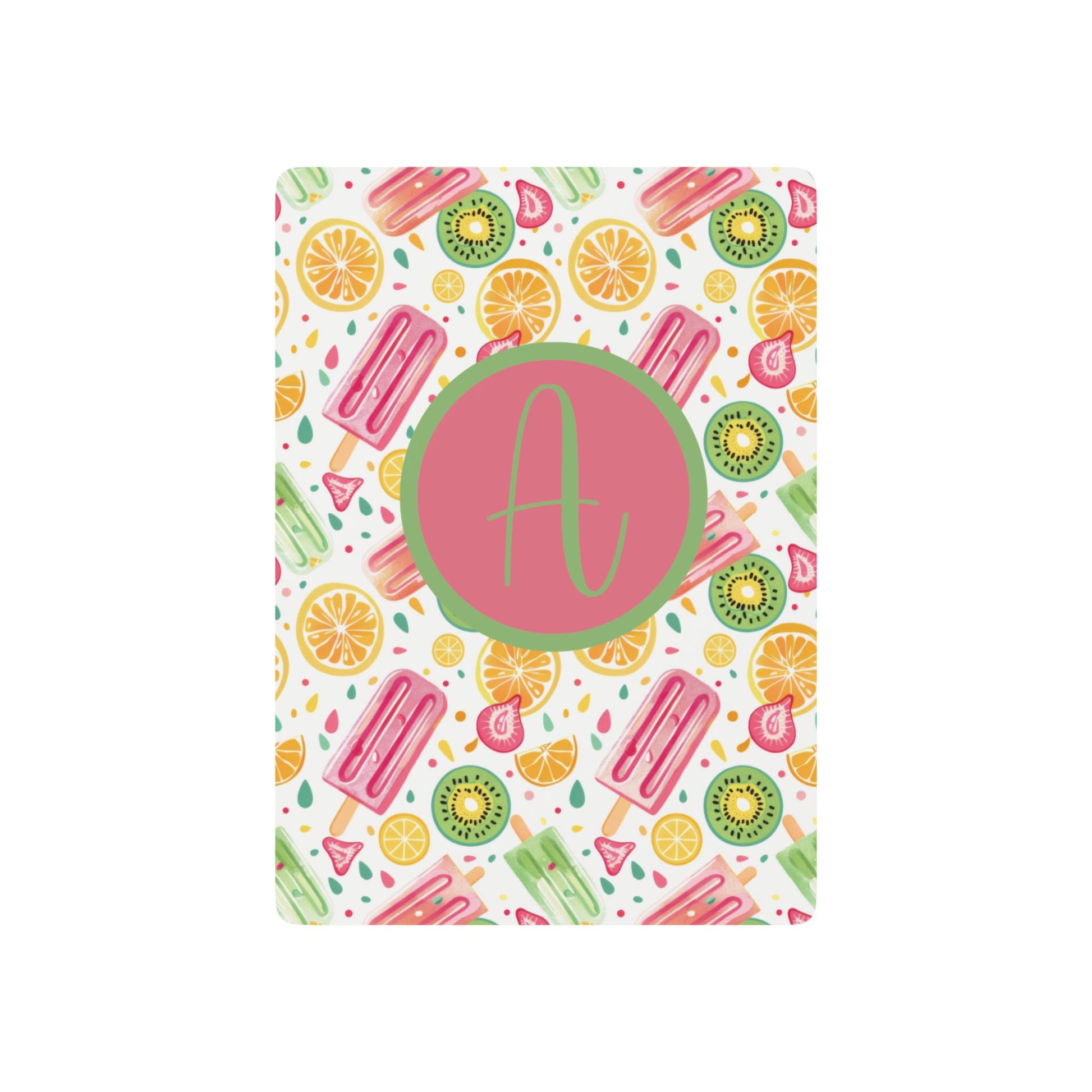 This personalized deck of playing cards features a colorful summer treats pattern paired with a custom monogram initial for a fun, yet timeless look. Each deck includes 52 playing cards plus two joker cards, printed on smooth, premium cardstock and sized at 2.5" x 3.5" for easy shuffling and play. The cards come packaged in a clear acrylic case, making them ready for gifting or display.